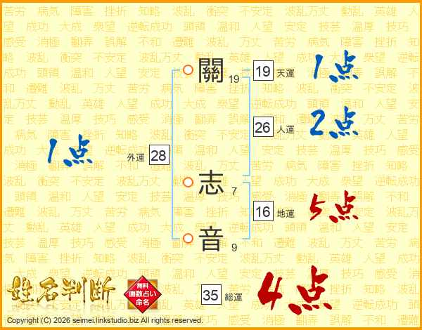關志音さんの総運は35画の4点!