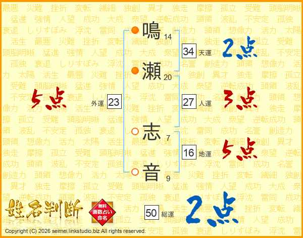 鳴瀬志音さんの総運は50画の2点!