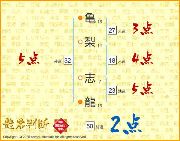亀梨志龍さんの総運は50画の2点!