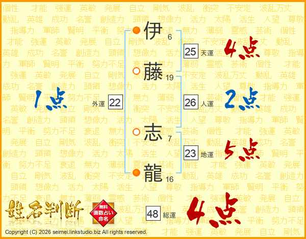 伊藤志龍さんの人運は26画の2点!