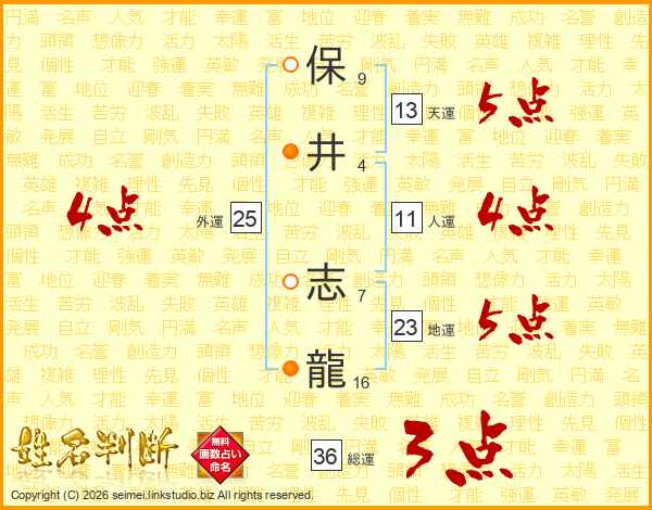 保井志龍さんの総運は36画の3点!