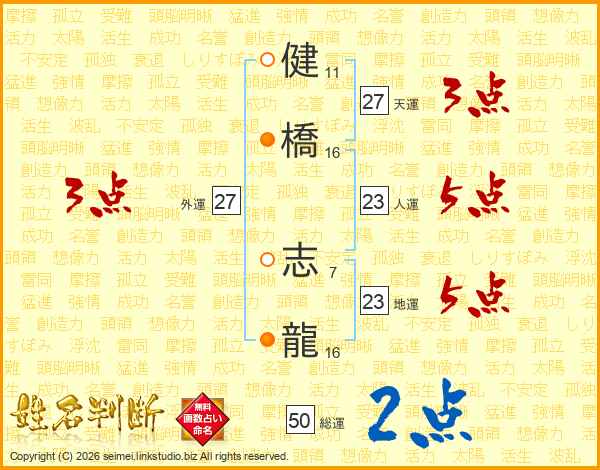 健橋志龍さんの総運は50画の2点!