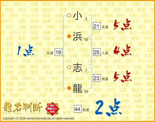 小浜志龍さんの総運は44画の2点!