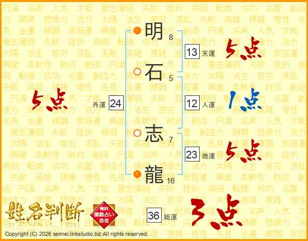 明石志龍さんの総運は36画の3点!