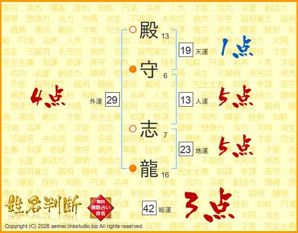 殿守志龍さんの総運は42画の3点!