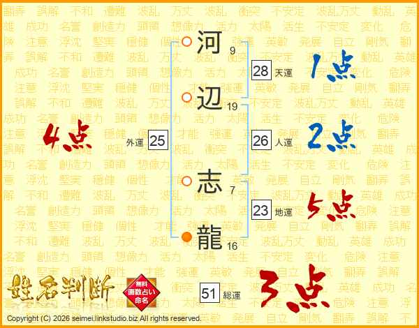 河辺志龍さんの総運は51画の3点!