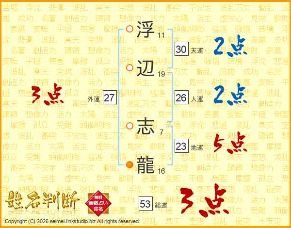 浮(11画)辺(19画) 志(7画)龍(16画)