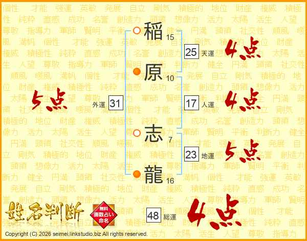 稲原志龍さんの総運は48画の4点!