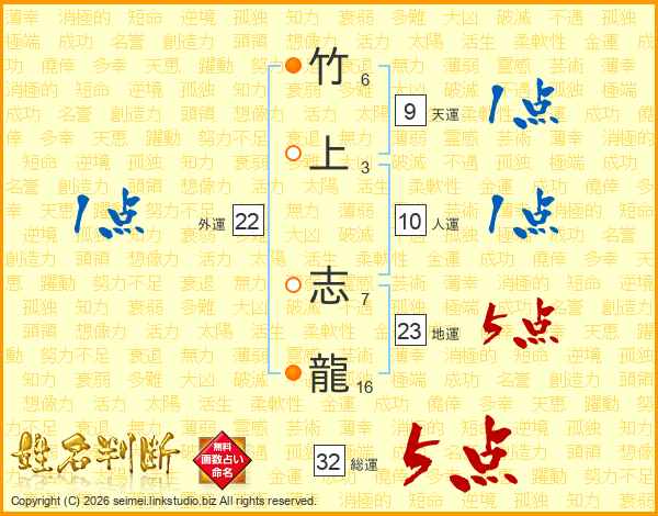 竹上志龍さんの総運は32画の5点!