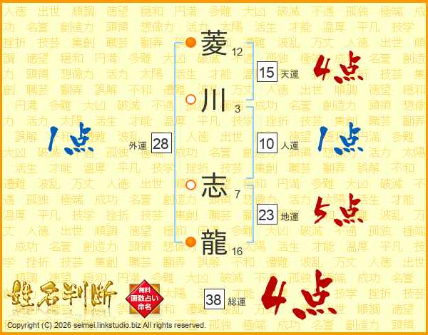 菱川志龍さんの総運は38画の4点!