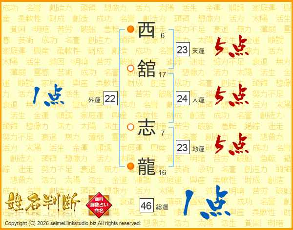 西舘志龍さんの総運は46画の1点!