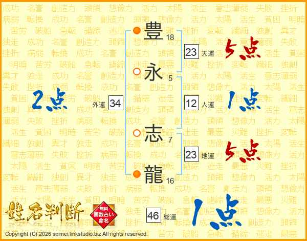 豊永志龍さんの総運は46画の1点!