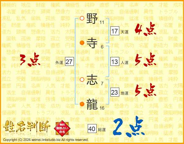 野寺志龍さんの天運は17画の4点!