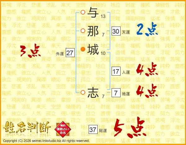 与那城志さんの総運は37画の5点!