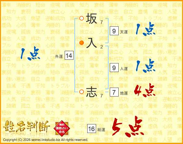 坂入志さんの総運は16画の5点!