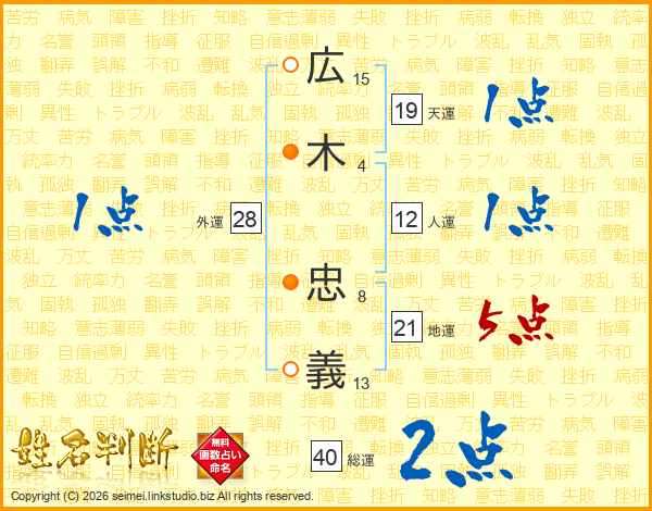 広木忠義さんの総運は40画の2点!