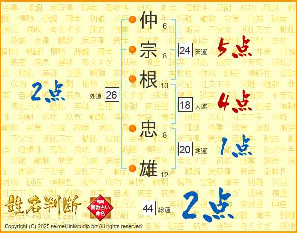 仲宗根忠雄さんの総運は44画の2点!