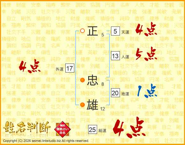 正忠雄さんの総運は25画の4点!