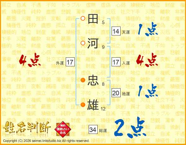 田河忠雄さんの天運は14画の1点!