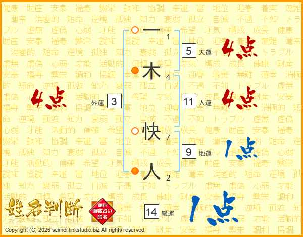 一木快人さんの人運は11画の4点!