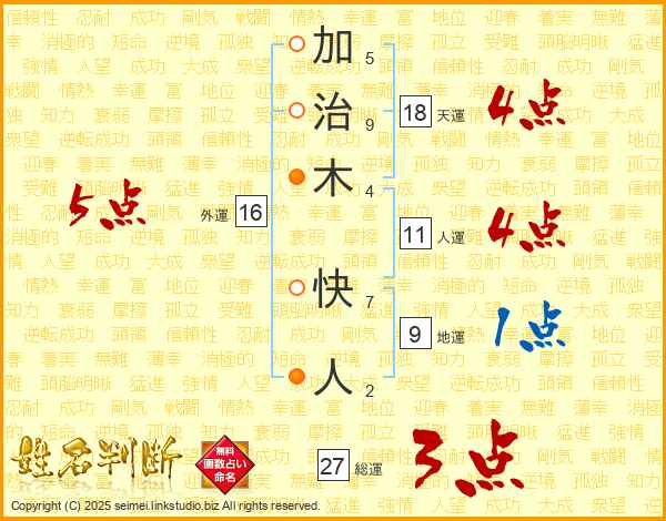 加治木快人さんの総運は27画の3点!