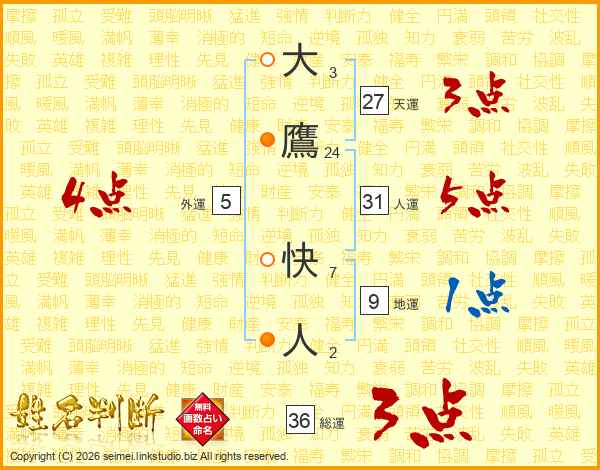 大鷹快人さんの総運は36画の3点!