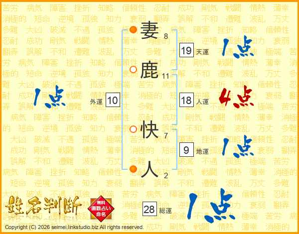 妻鹿快人さんの総運は28画の1点!