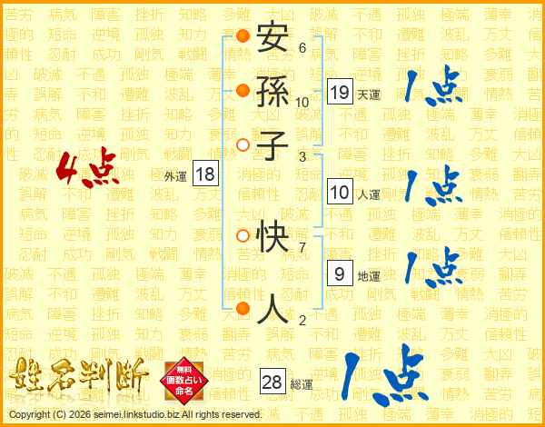 安(6画)孫(10画)子(3画) 快(7画)人(2画)