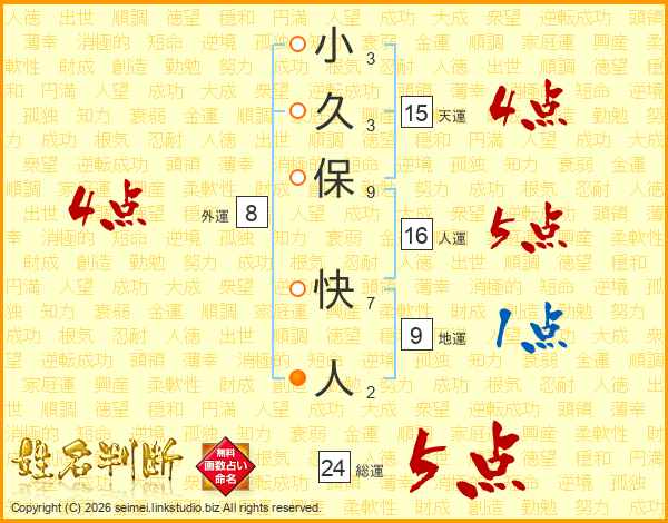 小(3画)久(3画)保(9画) 快(7画)人(2画)