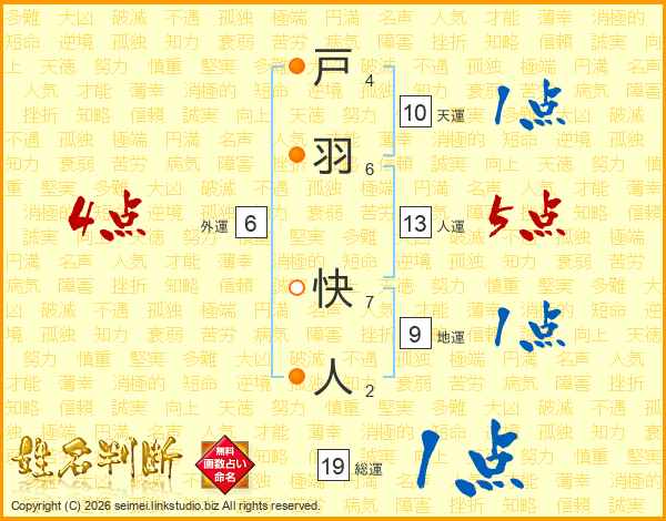 戸羽快人さんの総運は19画の1点!