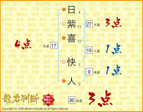 日紫喜快人さんの総運は36画の3点!