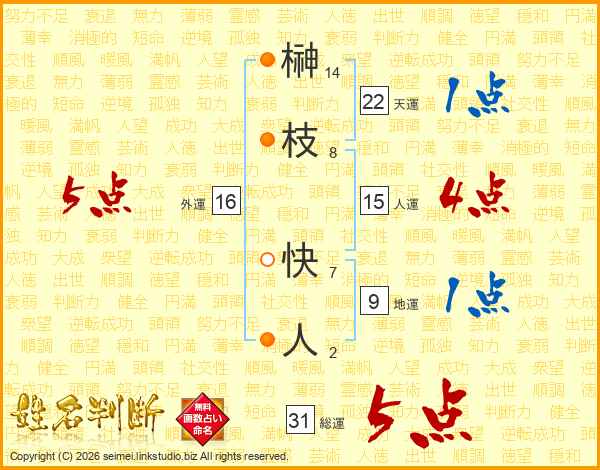 榊枝快人さんの総運は31画の5点!