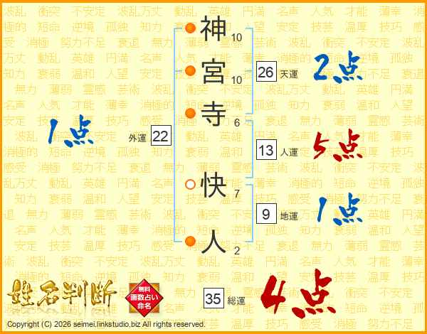 神宮寺快人さんの総運は35画の4点!