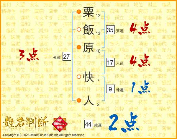 粟(12画)飯(13画)原(10画) 快(7画)人(2画)