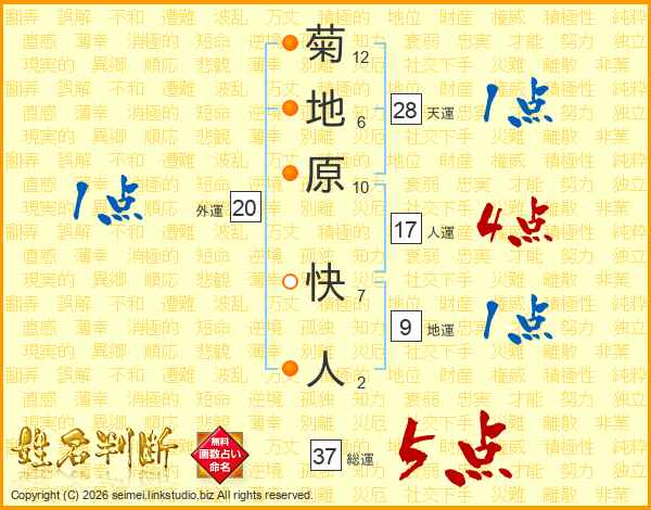 菊地原快人さんの総運は37画の5点!