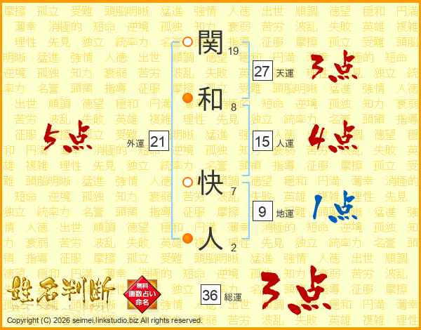 関和快人さんの外運は21画の5点!