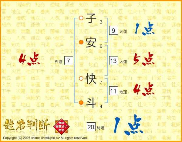 子安快斗さんの地運は11画の4点!
