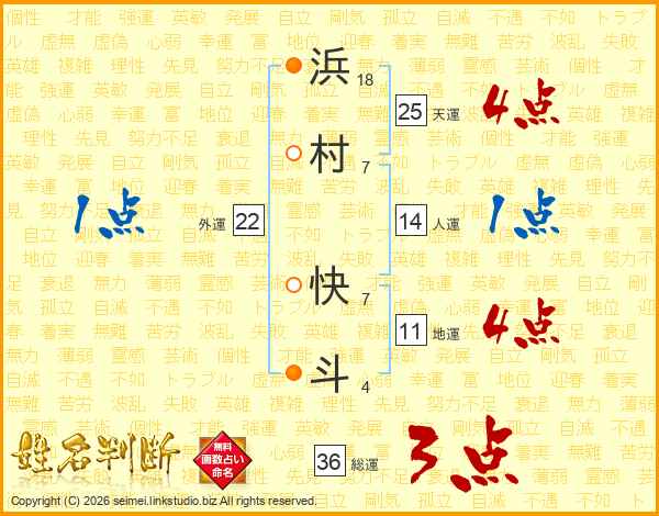 浜村快斗さんの天運は25画の4点!