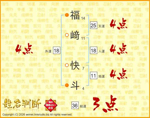 福﨑快斗さんの天運は25画の4点!