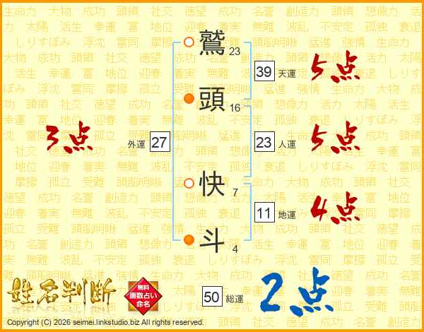 鷲頭快斗さんの総運は50画の2点!