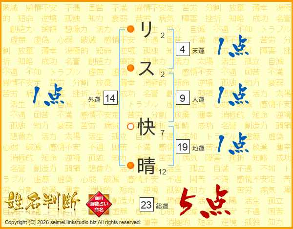 リス快晴さんの総運は23画の5点!