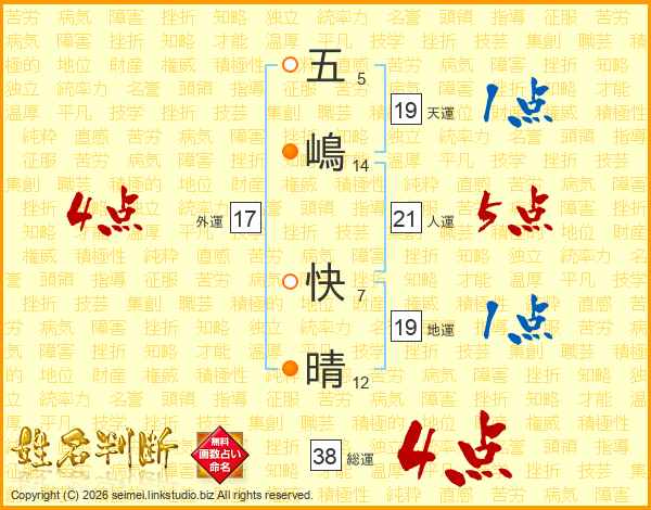 五嶋快晴さんの総運は38画の4点!