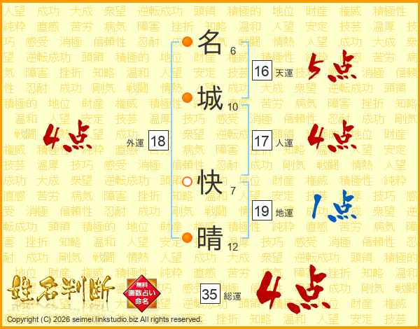 名城快晴さんの外運は18画の4点!