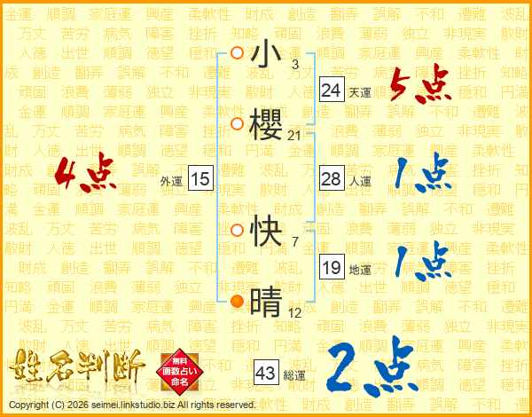 小櫻快晴さんの天運は24画の5点!