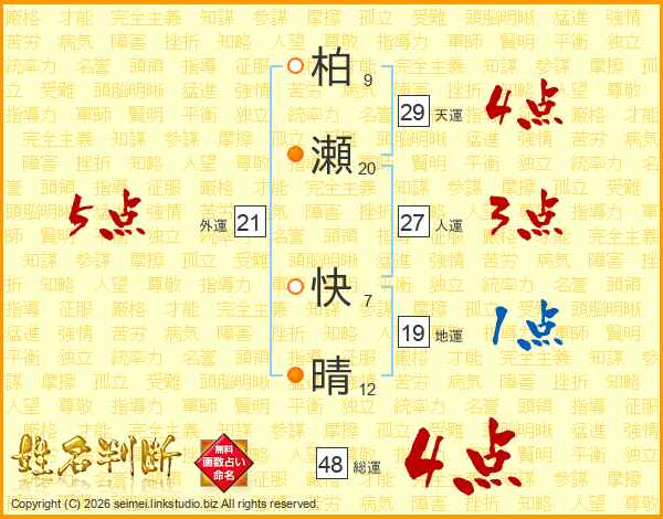 柏瀬快晴さんの総運は48画の4点!