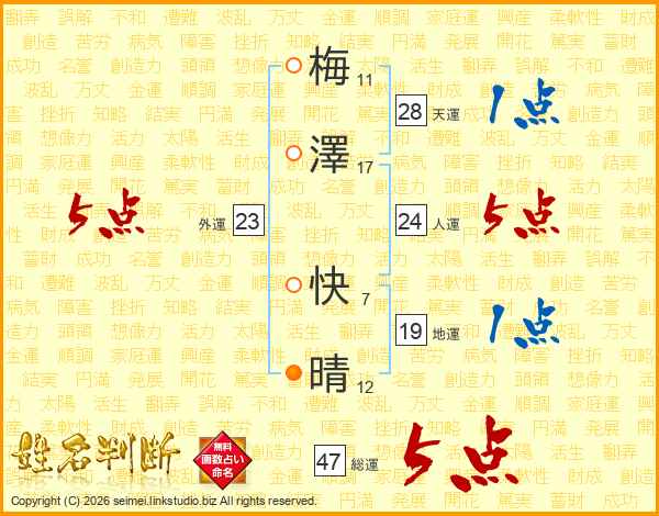 梅澤快晴さんの総運は47画の5点!