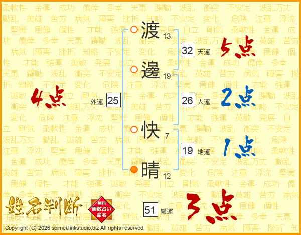渡邊快晴さんの人運は26画の2点!