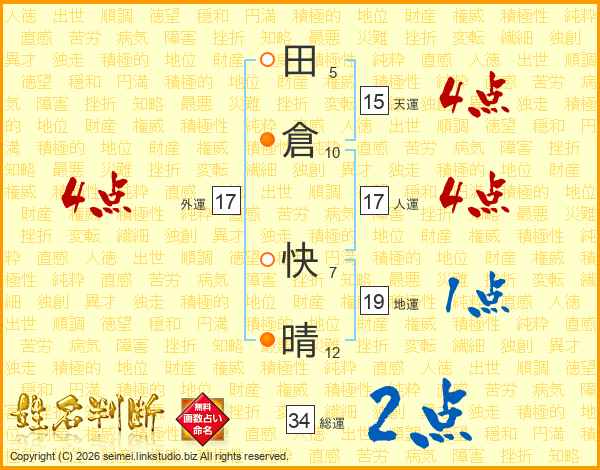 田倉快晴さんの人運は17画の4点!