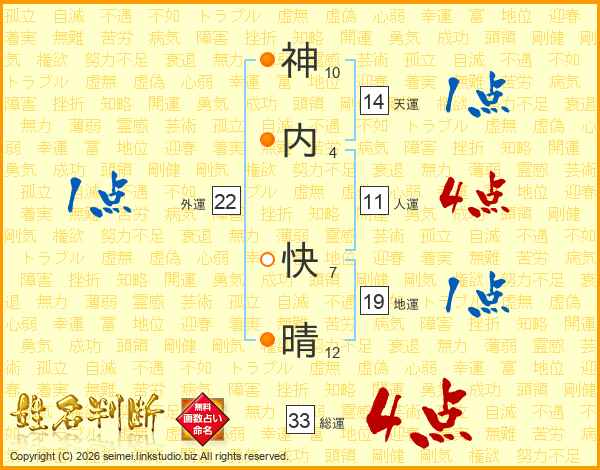 神内快晴さんの総運は33画の4点!