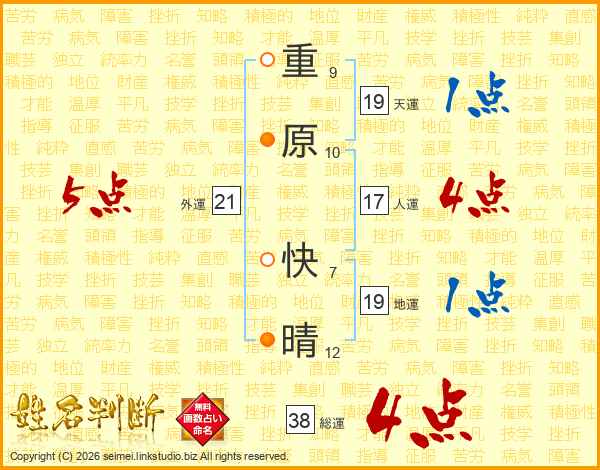 重原快晴さんの総運は38画の4点!